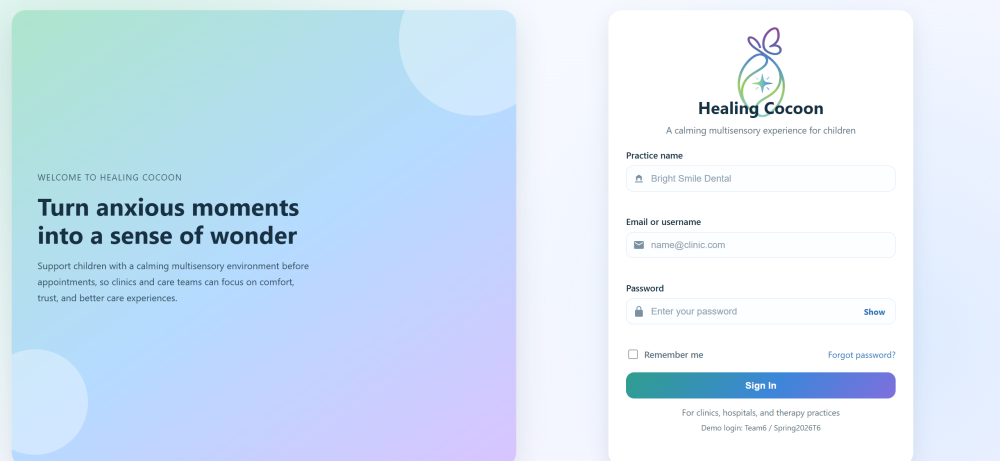 For this project, a web-based prototype was developed to simulate how users interact with the Healing Cocoon system.